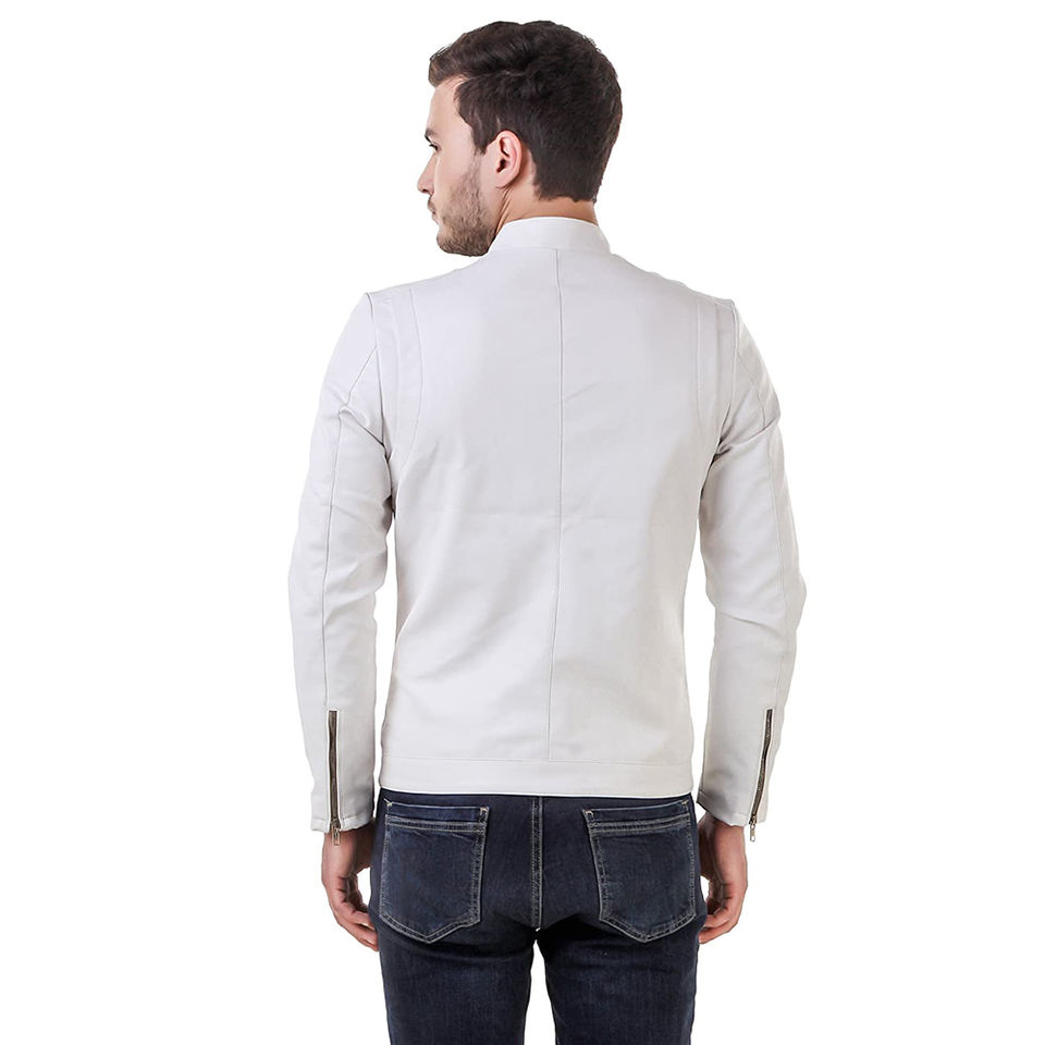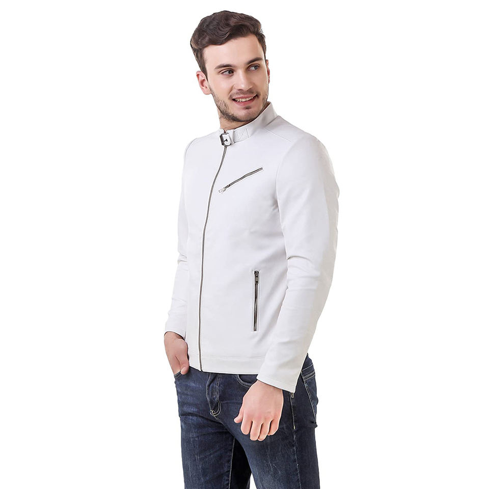แจ็กเก็ตมอเตอร์ไซด์สำหรับเยาวชน,เสื้อแจ็กเก็ตมอเตอร์ไซด์ทำจากหนังแท้ย้อมสีขาวล้วนผลิตจากปากีสถาน