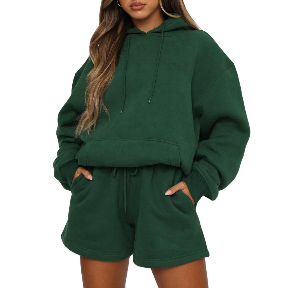 ชุดกระโปรงผู้หญิงแบบ OEM ผลิตในปากีสถาน เสื้อครอปฮู้ดดี้พิมพ์ลายโลโก้ลำลอง ชุดกระโปรงเสื้อครอปฮู้ดดี้สำหรับฤดูหนาว