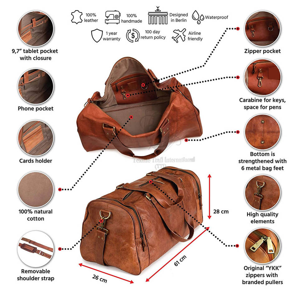 กระเป๋าเดินทางหนังคุณภาพสูง ทนทาน ผลิตในปากีสถาน ขายส่ง ปิดด้วยซิป น้ำหนักเบา สายสะพายปรับได้ สำหรับใช้งานกลางแจ้ง