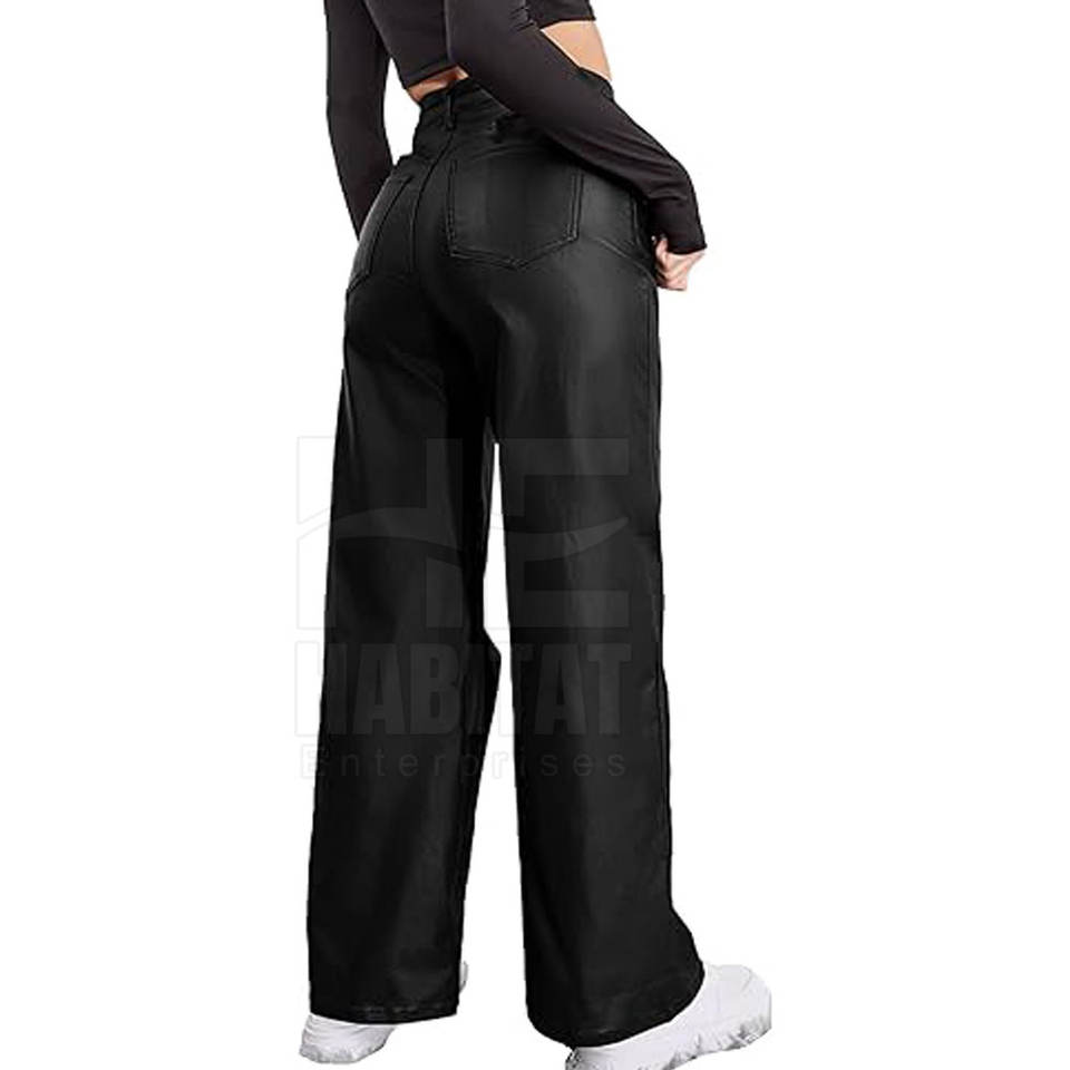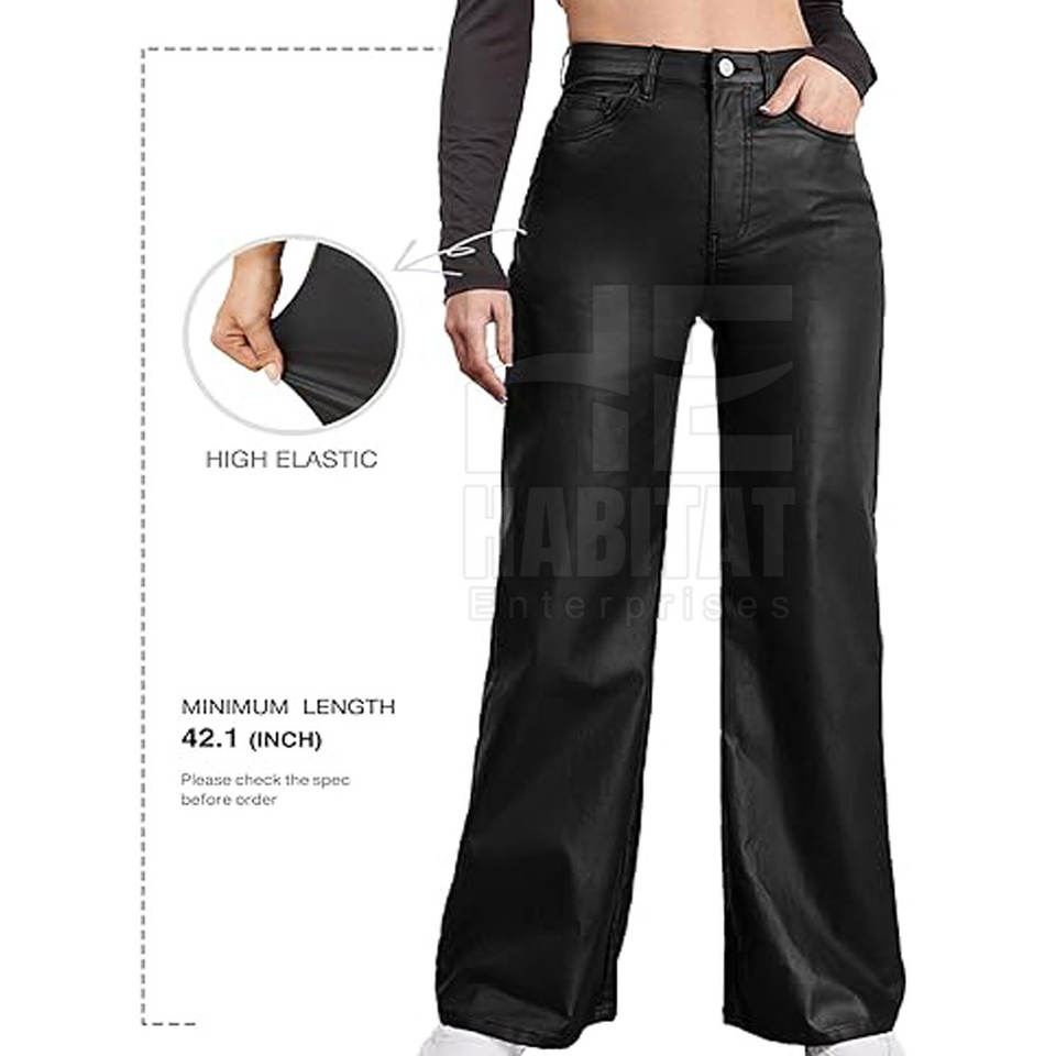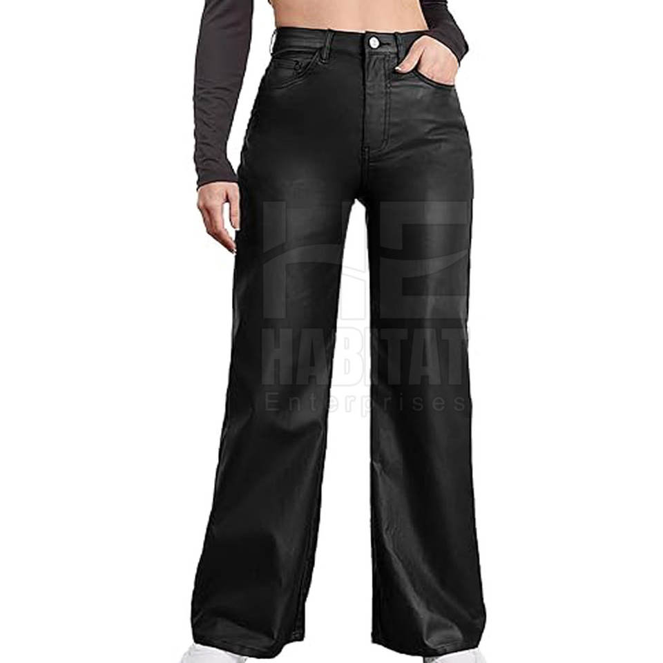 กางเกงหนังแท้ผู้หญิงทรงสลิมฟิตสีดำ ผลิตในปากีสถาน เนื้อนุ่ม เหมาะสำหรับผู้ใหญ่