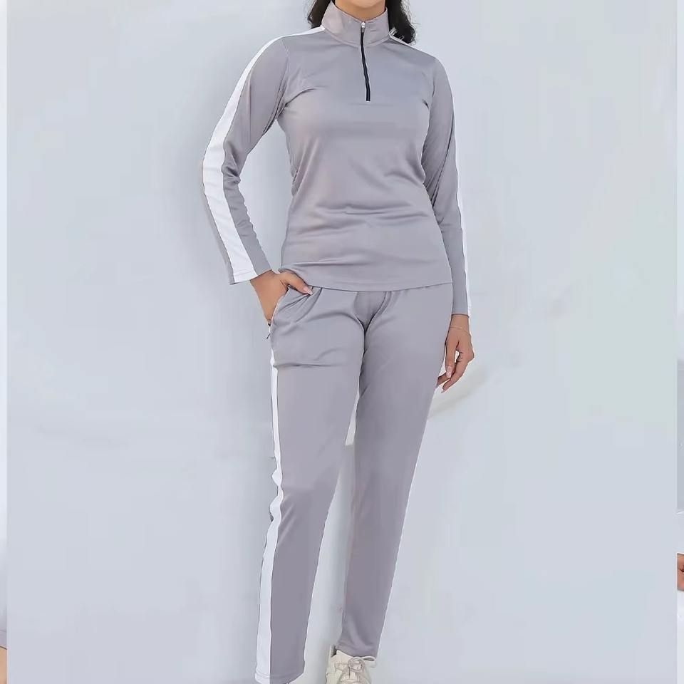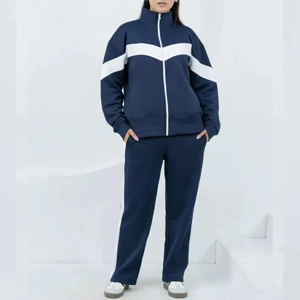 ชุดเซ็ต 2 ชิ้น เสื้อฮู้ดดี้คอตั้งลำลองสีพื้นสำหรับผู้หญิง ผลิตในปากีสถาน คอลเลคชั่นฤดูใบไม้ร่วง-ฤดูหนาว ปี 2025 แบบสั่งทำพิเศษ