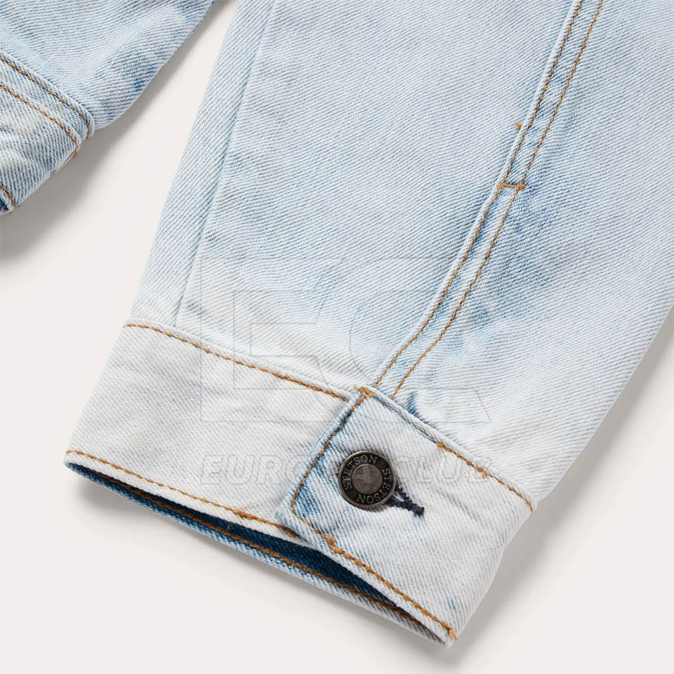 แจ็คเก็ตยีนส์ผู้ชายทรงสลิมฟิต ผลิตในปากีสถาน เหมาะสำหรับสวมใส่ลำลองและกิจกรรมกลางแจ้ง พร้อมบริการสั่งทำตามแบบ