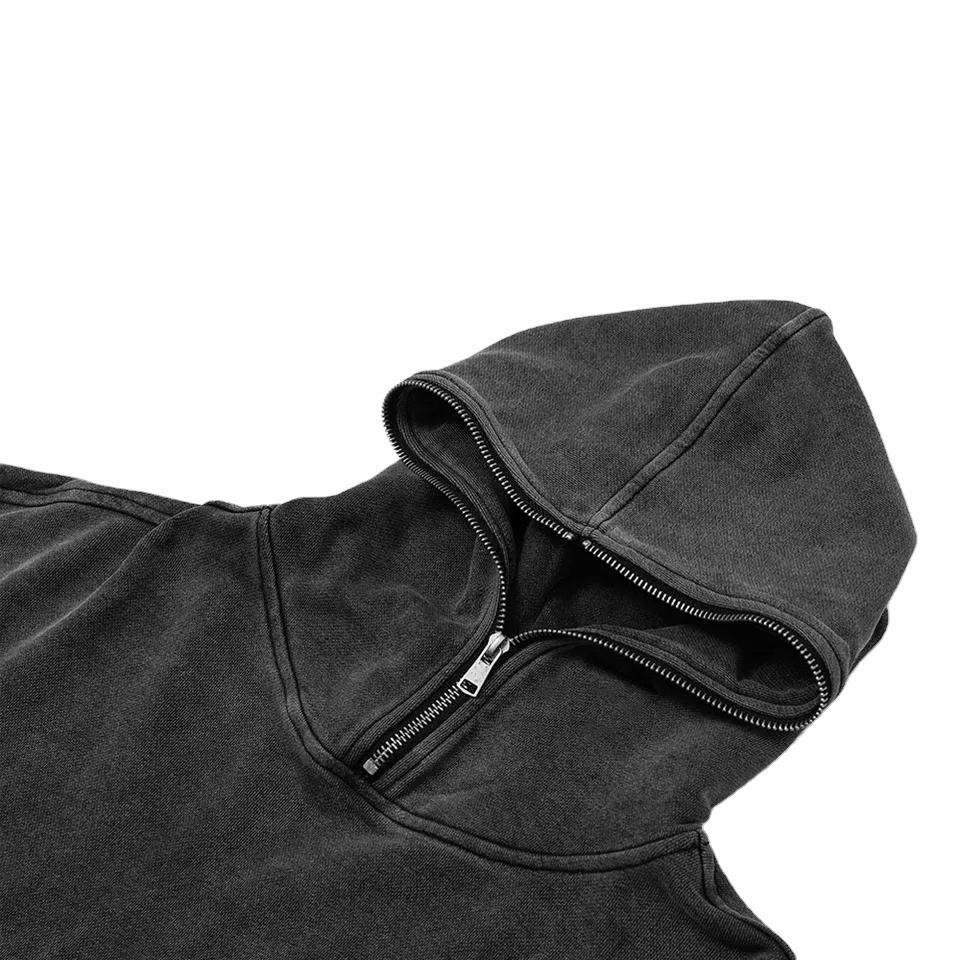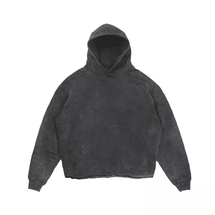 เสื้อฮู้ดดี้ผ้าฟลีซคอตตอน 100% ผลิตในปากีสถาน ล้างสีแบบวินเทจ ทรงปกติสำหรับผู้ชาย ออกแบบโลโก้ด้านหน้าได้ตามต้องการ