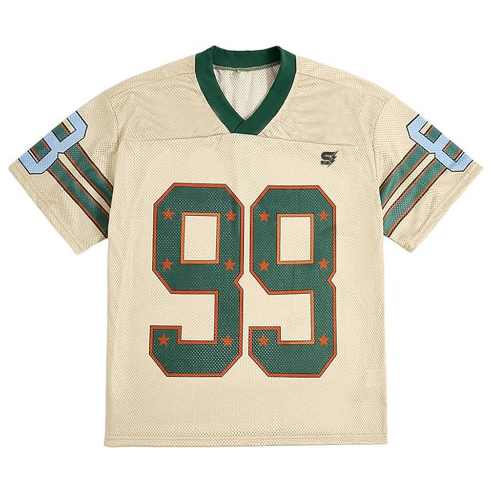 ผู้ผลิตเสื้ออเมริกันฟุตบอลจากปากีสถานสำหรับผู้ใหญ่-แขนสั้น ระบายอากาศได้ดี 100% โพลีเอสเตอร์ ปรับแต่งชื่อทีมได้