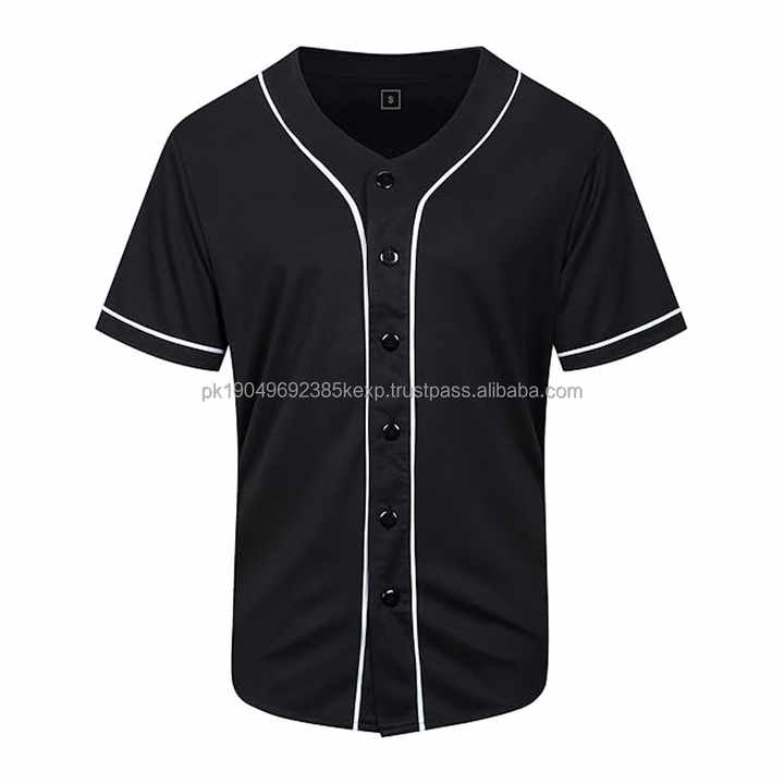 เสื้อเจอร์ซีย์เบสบอลติดกระดุมเสื้อเจอร์ซีย์สีทึบผลิตจากปากีสถาน