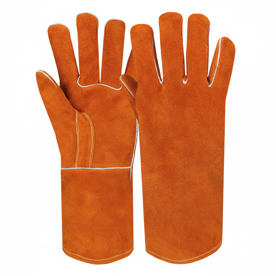 ถุงมือหนังสำหรับงานเชื่อมสีฟ้าถุงมือกันลื่นผลิตจากปากีสถาน