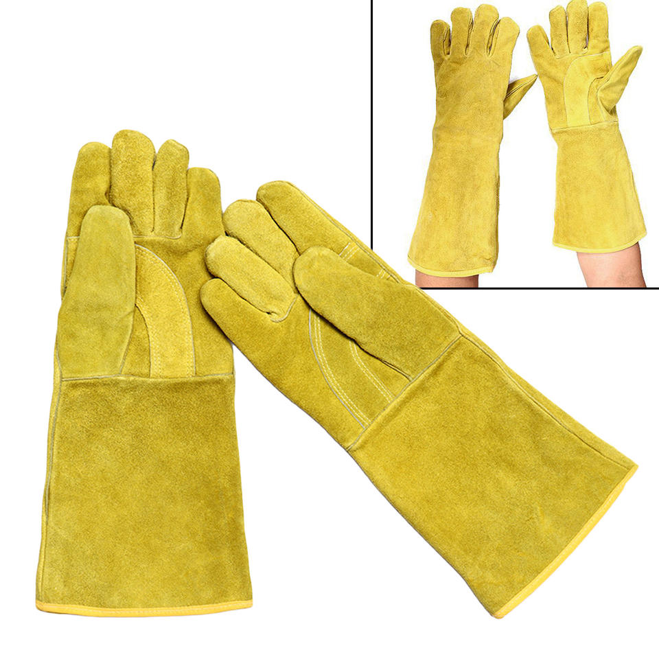 ถุงมือเชื่อมหนังสีเหลืองป้องกันการกระแทกสำหรับคนงานก่อสร้างผลิตตามสั่ง