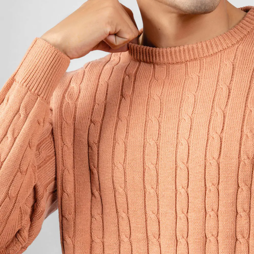 เสื้อสเวตเตอร์ผู้ชายผ้าฝ้ายแท้ 100% จากผู้ผลิตปากีสถาน ป้องกันการเกิดขุย ลายปั๊มนูนสไตล์วินเทจ ด้านหน้าระบายอากาศได้ดี เหมาะสำหรับฤดูหนาว