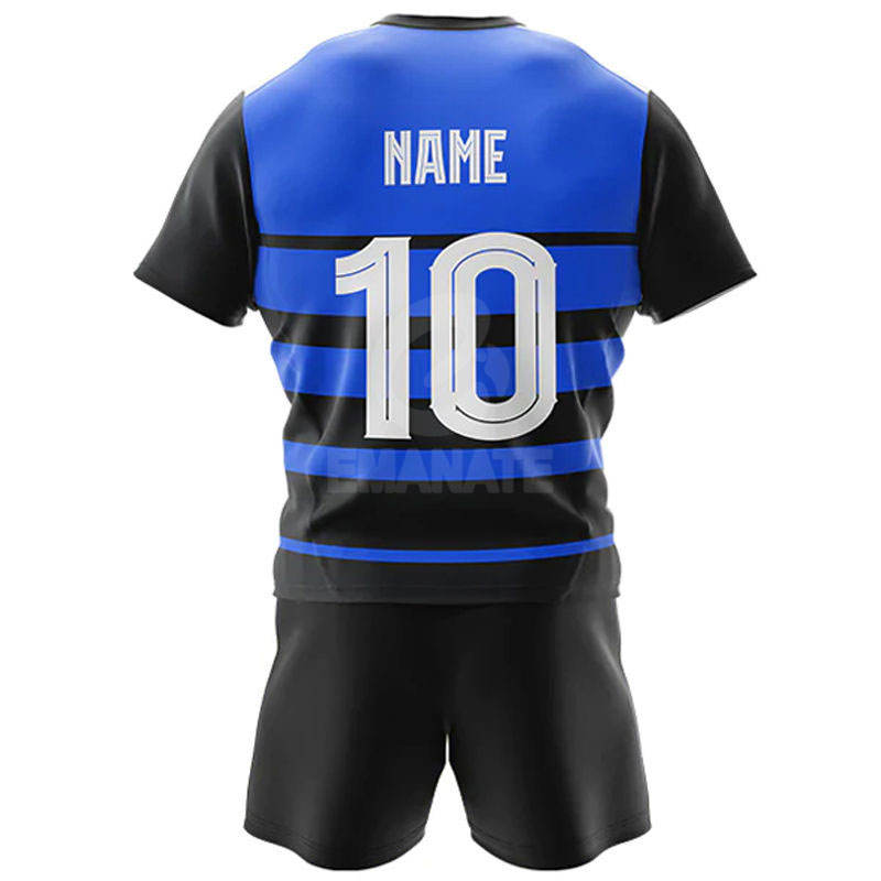 ชุดยูนิฟอร์มรักบี้น้ำหนักเบาสำหรับผู้ชายจากผู้ผลิตปากีสถาน ผลิตจากโพลีเอสเตอร์ 100% คุณภาพสูง ออกแบบตามสั่ง ระบายอากาศได้ดี พร้อมชื่อทีม