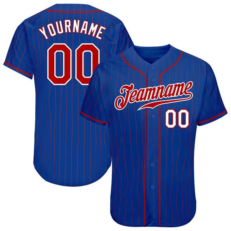 Pakistan Sportswear Industry Custom Royal Red Pinstripe Red-White Authentic Baseball Jersey