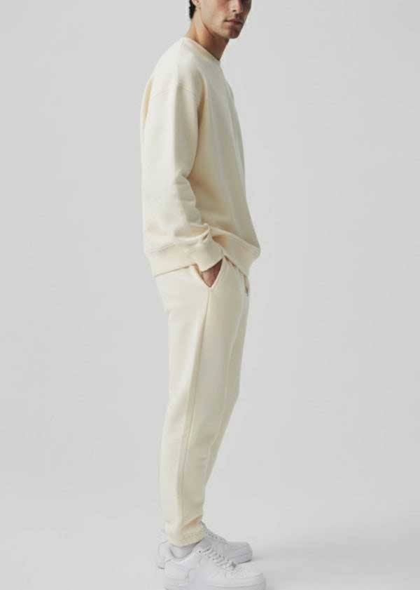 ชุดเซ็ตแทรคสูทสีครีมสำหรับผู้ชายสไตล์สตรีทแวร์ฤดูหนาว ผลิตตามสั่งแบบ OEM จากปากีสถาน รับทำโลโก้ สี และดีไซน์ตามต้องการ ขายส่ง ระบายอากาศได้ดี
