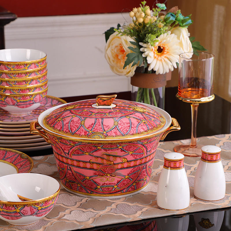 ชุดรับประทานอาหารสุดหรูในวังสีชมพูชุดรับประทานอาหารพอร์ซเลนสำหรับตกแต่งบ้านกล่องของขวัญยุโรปตะวันตกชุดปาร์ตี้58ชิ้น