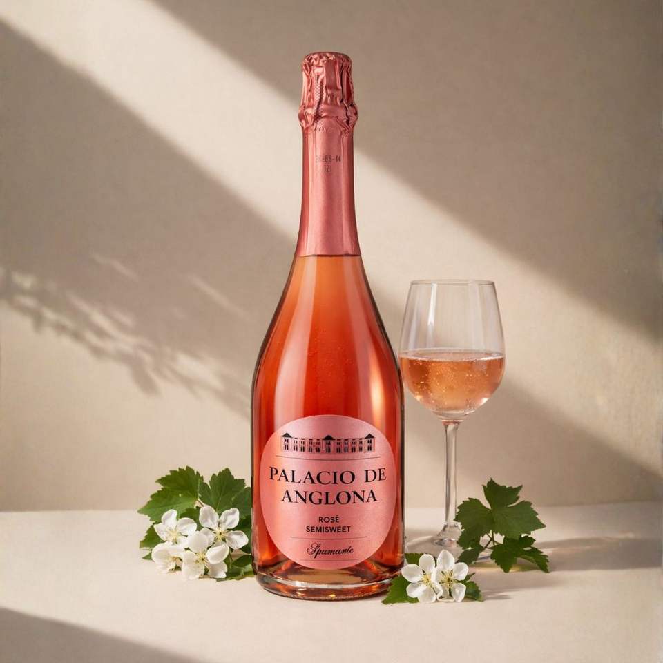 ปาลาซิโอ เดอ อังโกลนา สปาร์คกลิ้ง โรส ไวน์กึ่งหวาน ไอน์เรนและเทมปรานิลโล 9.5% ABV ไวน์สปาร์คกลิ้งโรสสเปน 750 มล.