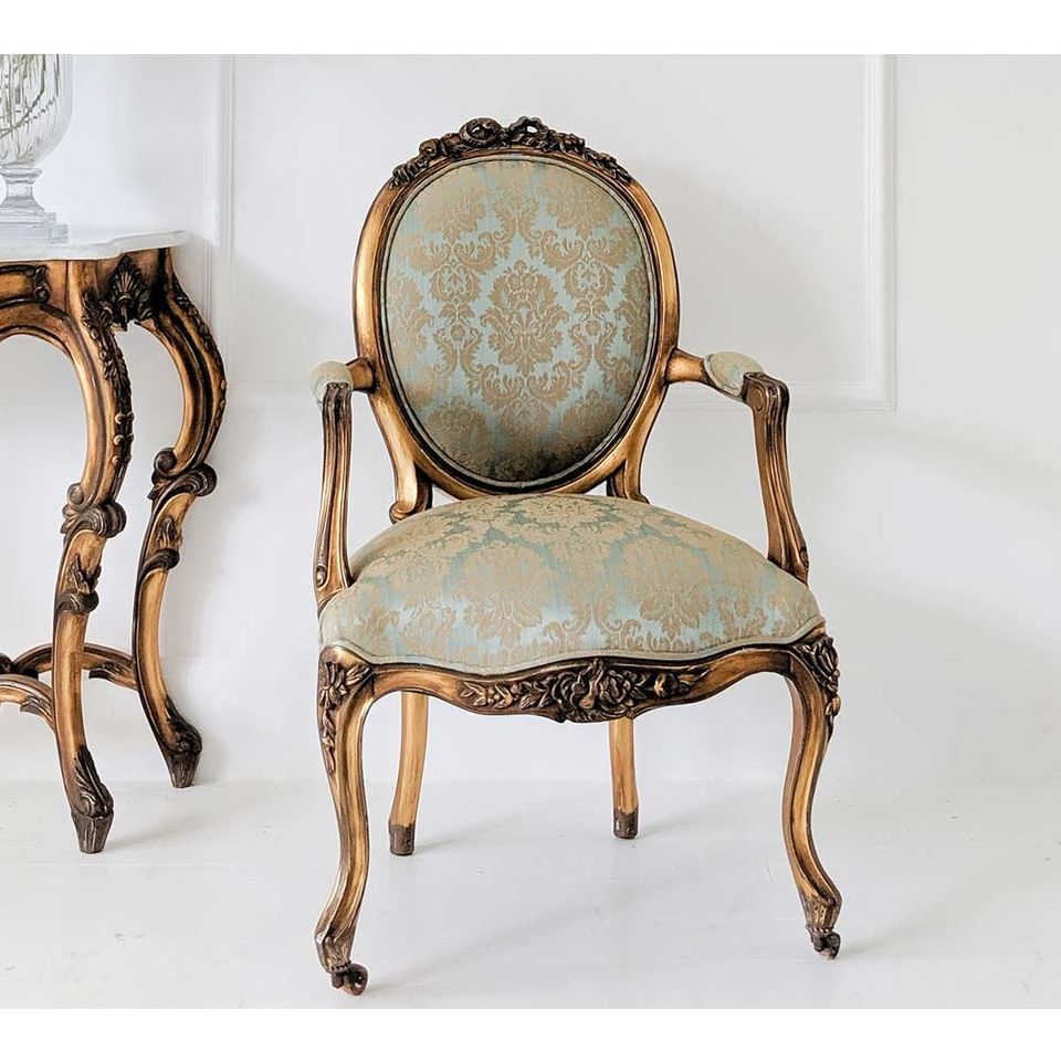 เก้าอี้ห้องนอนสไตล์ฝรั่งเศสทรงมัมมี่โกลด์กิลท์ งานแฮนด์เมดโครงไม้มะฮอกกานี พระราชวังแวร์ซายส์