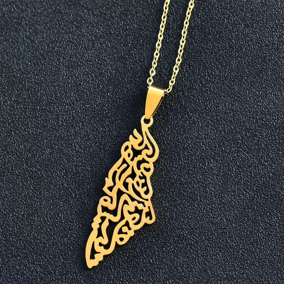 สร้อยคอจี้แผนที่อิสลามแบบกลวงอาหรับสแตนเลสชุบทองจี้อาหรับสร้อยคอประเทศอาหรับ