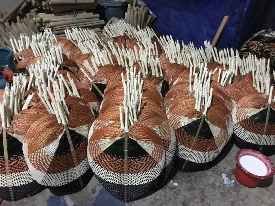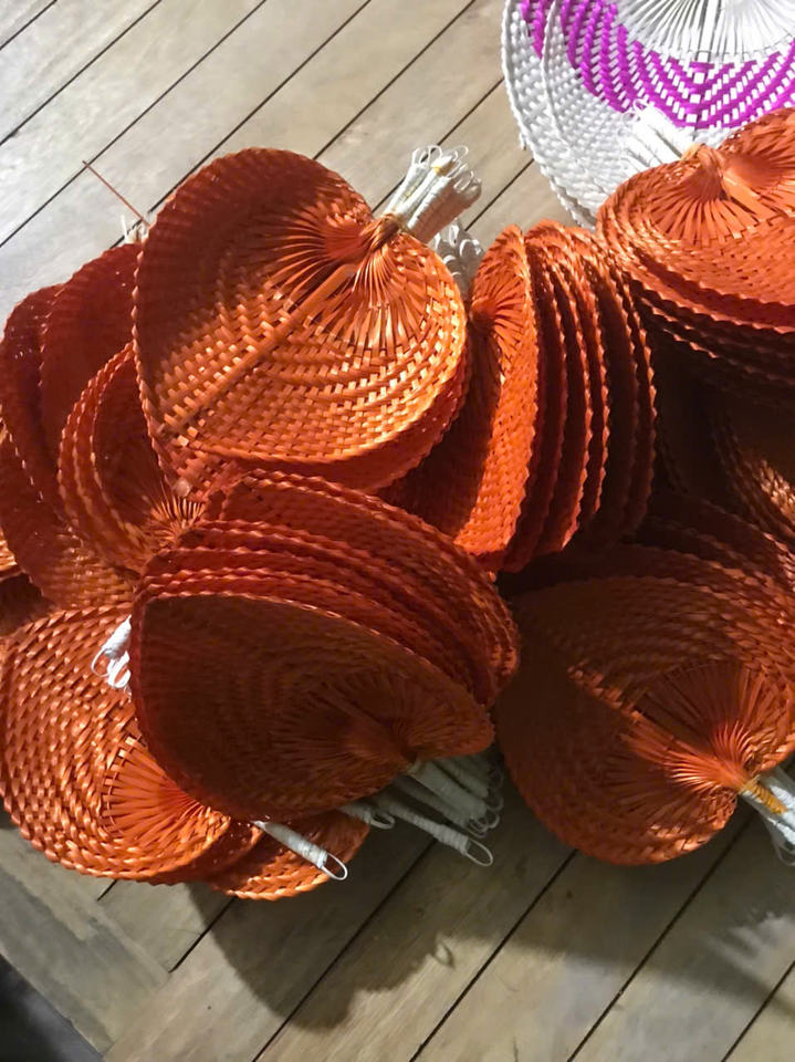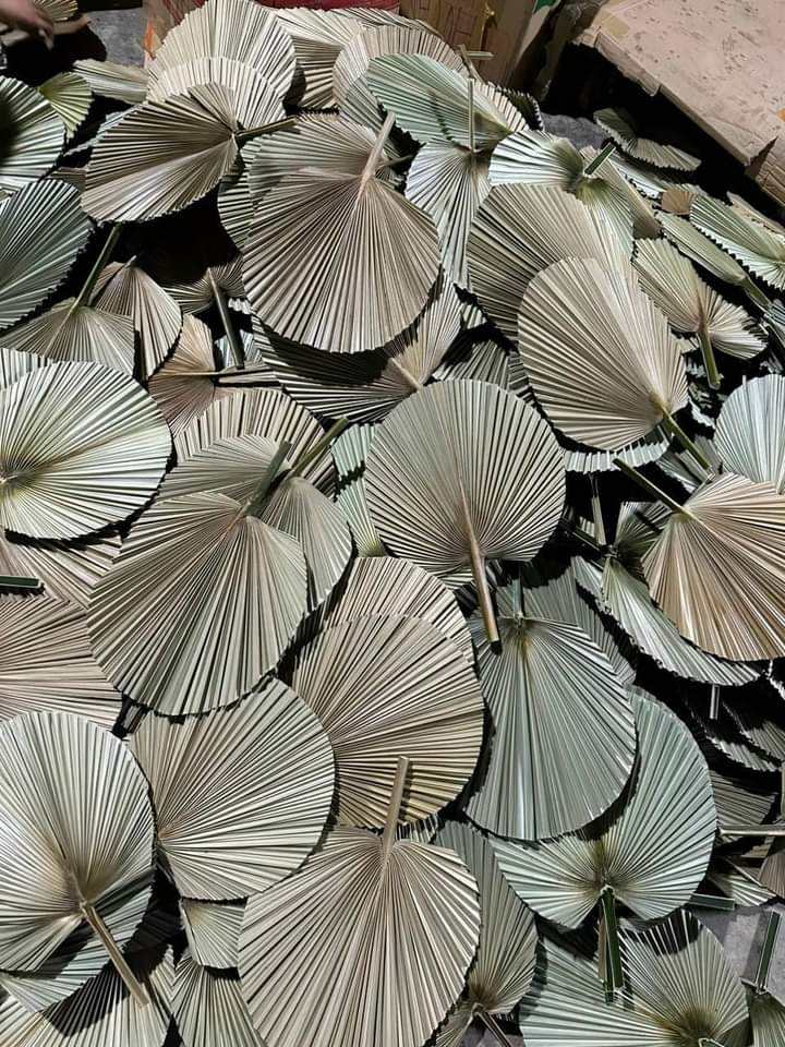 พัดใบปาล์มทำจากไม้ไผ่ทำมือของขวัญงานแต่งงานงานปาร์ตี้ของขวัญของที่ระลึกรูปใบไม้ธรรมชาติพัดลมมือถือจากของตกแต่งจากเวียดนาม