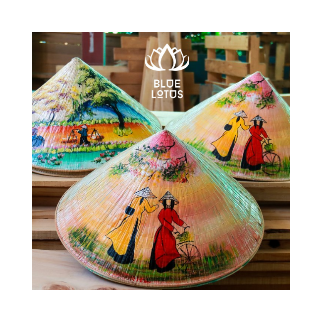 หมวกทรงกรวยใบปาล์มผลิตภัณฑ์แฮนด์เมดจากเวียดนามมีความทนทานและสะดวกสบาย