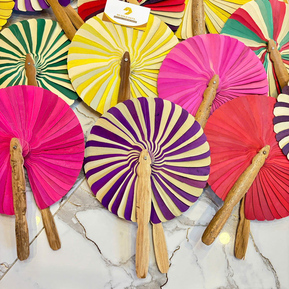 พัดใบปาล์ม งานฝีมือจากใบปาล์ม พัดตกแต่งสำหรับงานแต่งงาน ของขวัญ งานอีเว้นท์ รับทำโลโก้ตามสั่ง คุณไวโอเล็ต