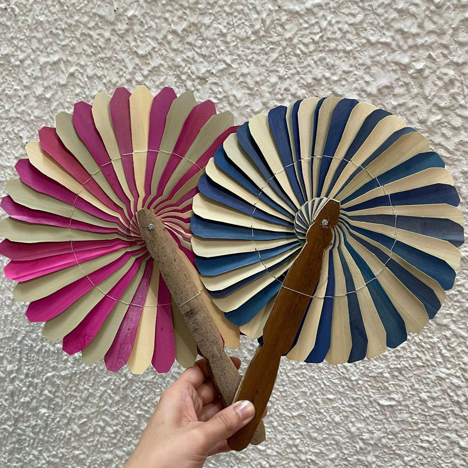 พัดใบปาล์ม งานฝีมือ ทำจากใบปาล์มแห้ง น้ำหนักเบา พกพาสะดวก ใช้ตกแต่งสวน งานแต่งงาน ผลิตในเวียดนาม