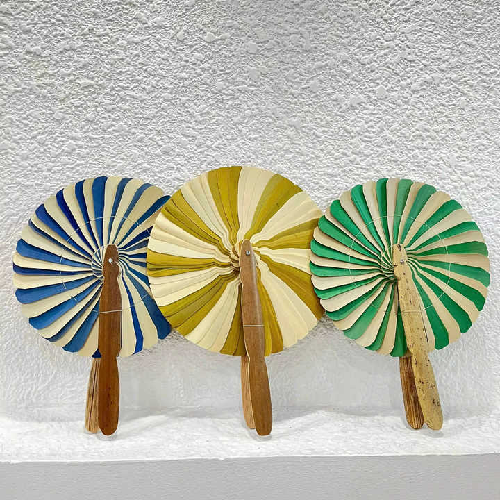 พัดใบปาล์ม ทำจากใบปาล์มแห้ง ทอมือ น้ำหนักเบา ใช้เป็นเครื่องประดับถือมือ สำหรับตกแต่งงานปาร์ตี้ในสวน ผลิตในเวียดนาม