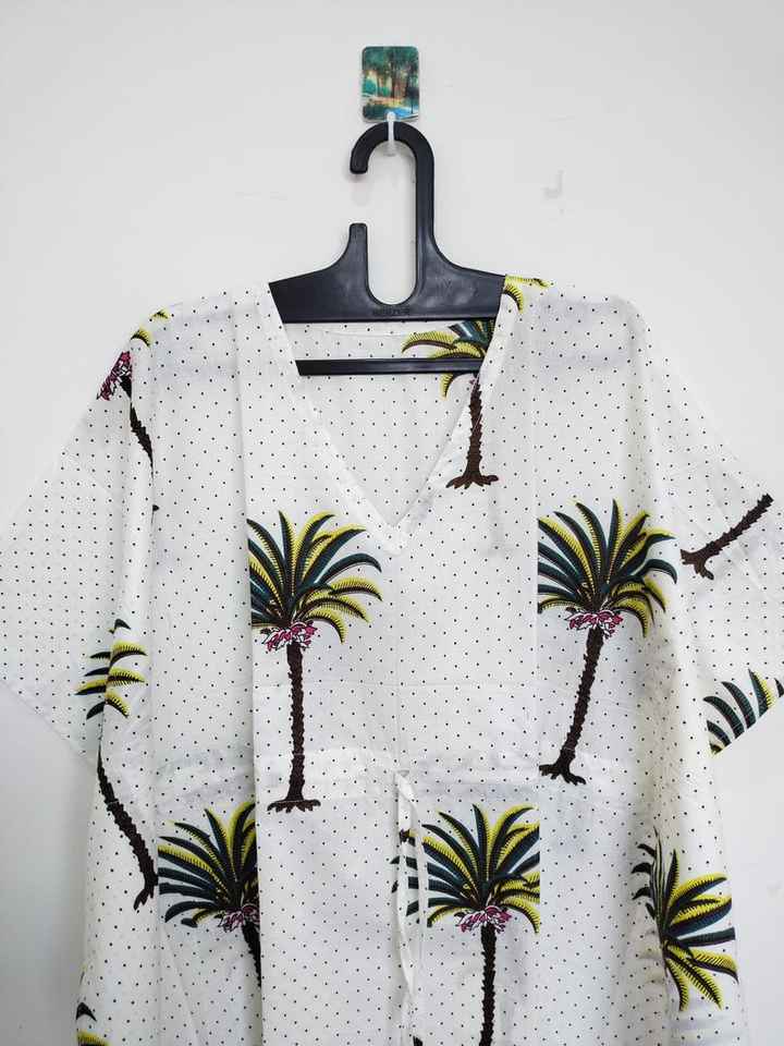 ชุดคลุมชายหาดผ้าฝ้ายพิมพ์ลายต้นปาล์ม สไตล์โบฮีเมียน น้ำหนักเบา สวมใส่สบาย เหมาะสำหรับใส่ในรีสอร์ท