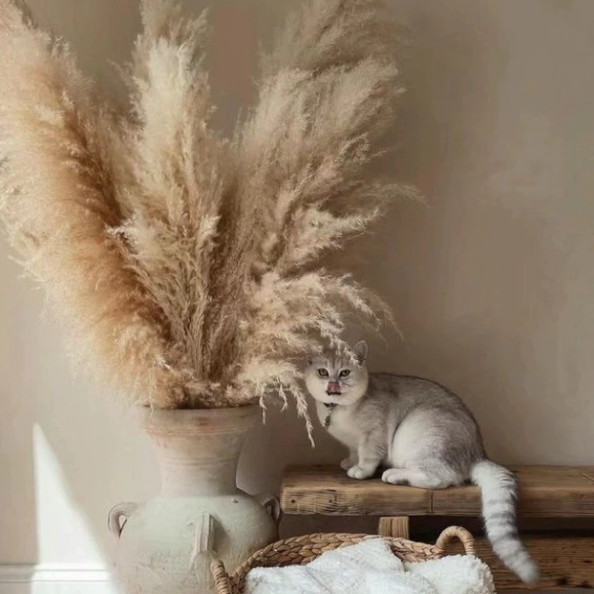 หญ้า pampas จากเวียดนามขายดี2025ดอกหญ้า pampas ตกแต่งบ้านดอกไม้ปุยสำหรับตกแต่งงานแต่งงาน