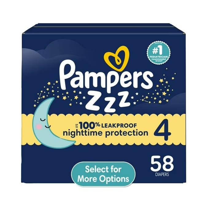 ผ้าอ้อมเด็ก Swaddlers Overnight Zzz Jacquard Cotton ไซส์ 4 จำนวน 58 ชิ้น แบบสองชั้น ป้องกันการรั่วซึมด้านข้าง รูปทรง Aliform DE (เลือกเพิ่มเติม)
