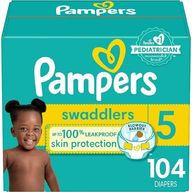 ผ้าอ้อมสำเร็จรูปแพมเพิส สวอดเดลอร์ส สำหรับเด็กผู้ชายและเด็กผู้หญิง ไซส์ 5 จำนวน 104 ชิ้น เนื้อผ้านุ่มพิเศษ