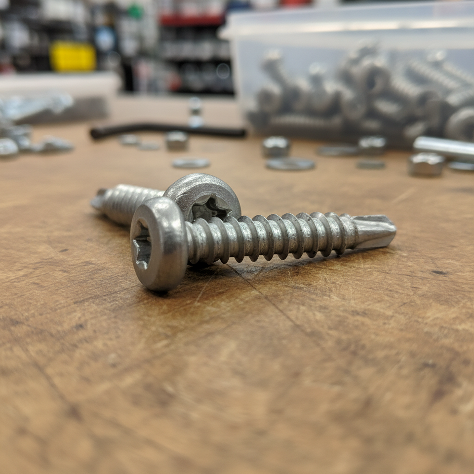สกรูเจาะตัวเองแบบหัวแบน สแตนเลส คลาส 8 เกลียวหยาบ หัวแฉก/หัวไขว้ ความแข็งแรงสูง ทนการกัดกร่อน