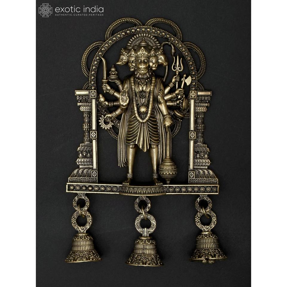 รูปปั้นทองเหลืองแขวนผนังลาย panchamukhi hanuman พร้อมระฆัง Superfine 7 "สินค้าประเภทพรีเมี่ยม