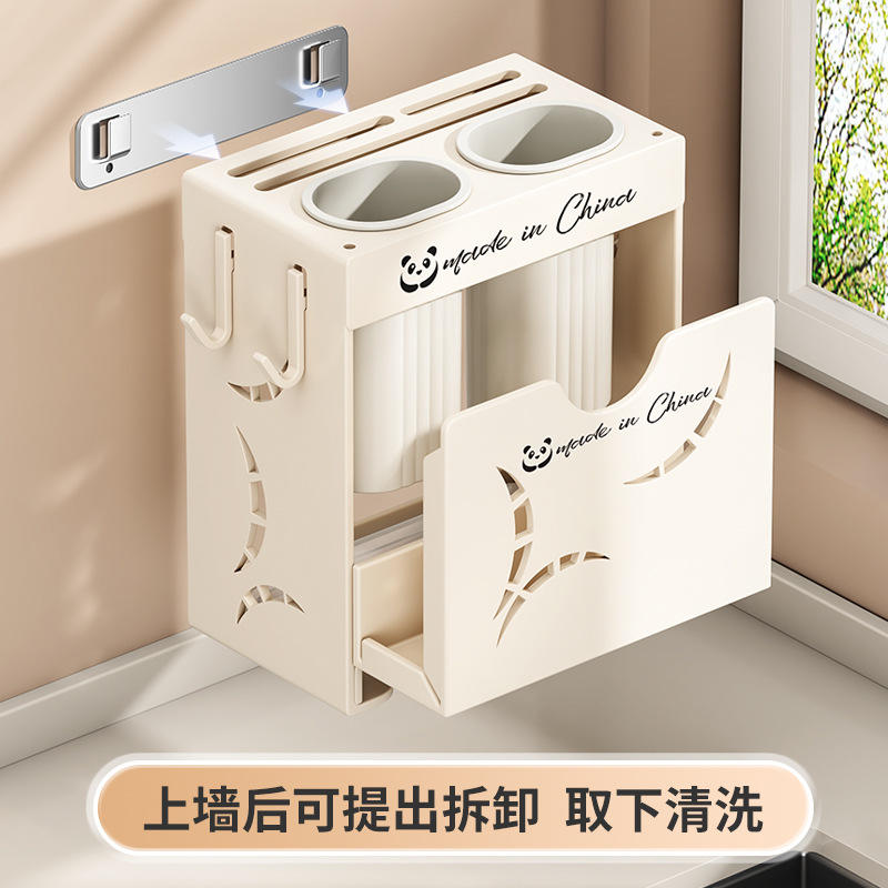 ที่เก็บของในครัวแพนด้า พร้อมที่วางตะเกียบและที่วางมีด สำหรับวางบนเคาน์เตอร์ ดีไซน์มินิมอล ผลิตในจีน
