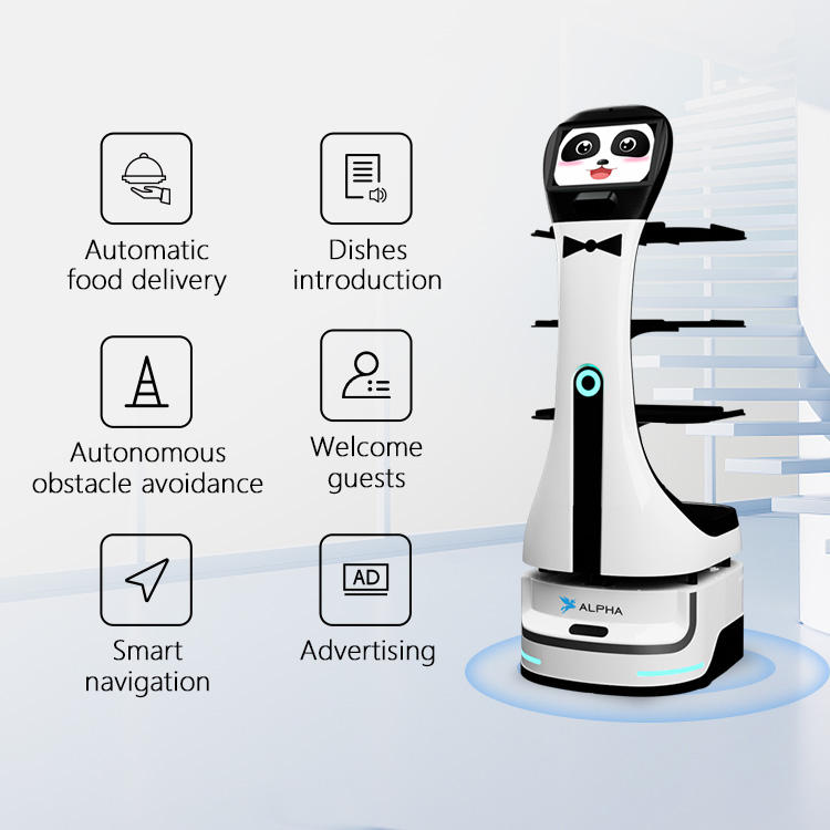 หุ่นยนต์ส่งอาหารอัจฉริยะ Panda พร้อมถาดหลายชั้น - ระบบนำทางอัตโนมัติและการหลีกเลี่ยงสิ่งกีดขวางอัจฉริยะสำหรับร้านอาหาร