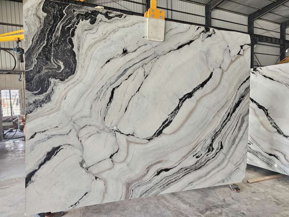 กระเบื้องหินอ่อนสีขาวแพนด้าการออกแบบที่ทันสมัยพื้นผิวขัดหินธรรมชาติสำหรับเคาน์เตอร์ห้องครัวโรงแรมและพื้น