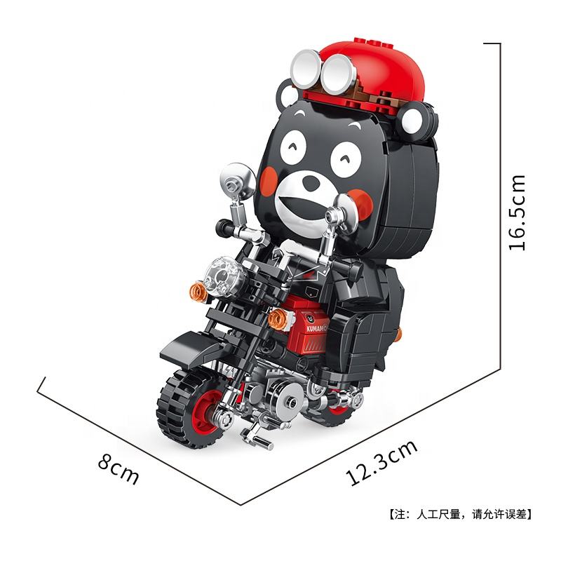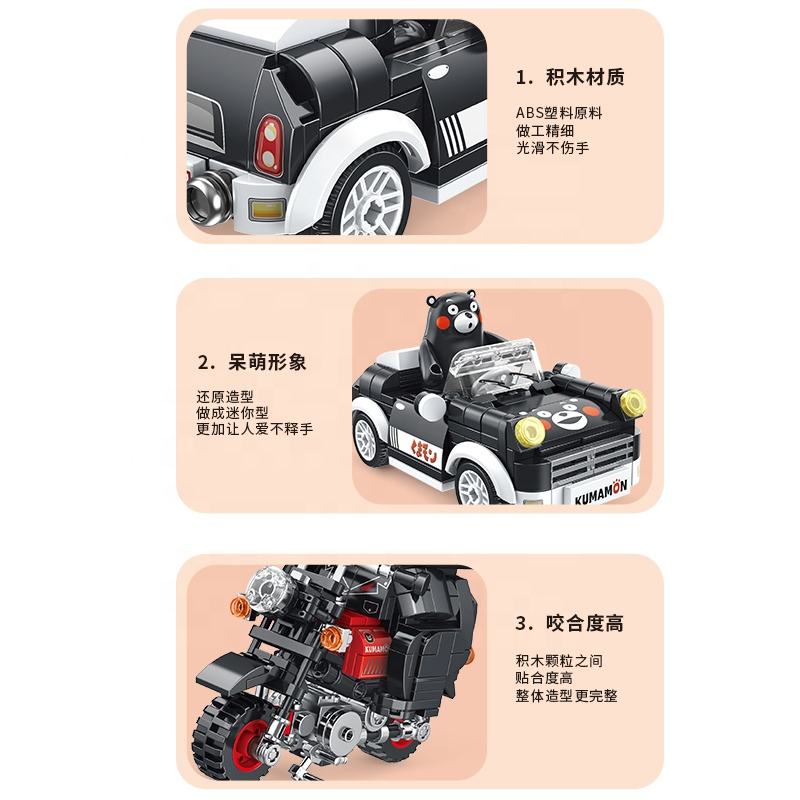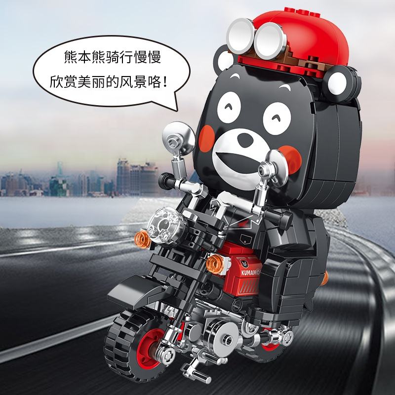 Panlos Hot Sell Japanese Cartoon Anime Kumamon Bear Model Toys Assembly Motorcycle Vehicle Building Block Bricks Toy for Kid