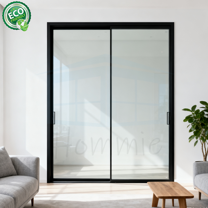 ประตูบานเลื่อนกระจกอลูมิเนียมแบบพาโนรามา โครงบาง กระจกสองชั้น กันลม พร้อมมุ้งไฟเบอร์กลาส สำหรับห้องนั่งเล่นภายในบ้าน