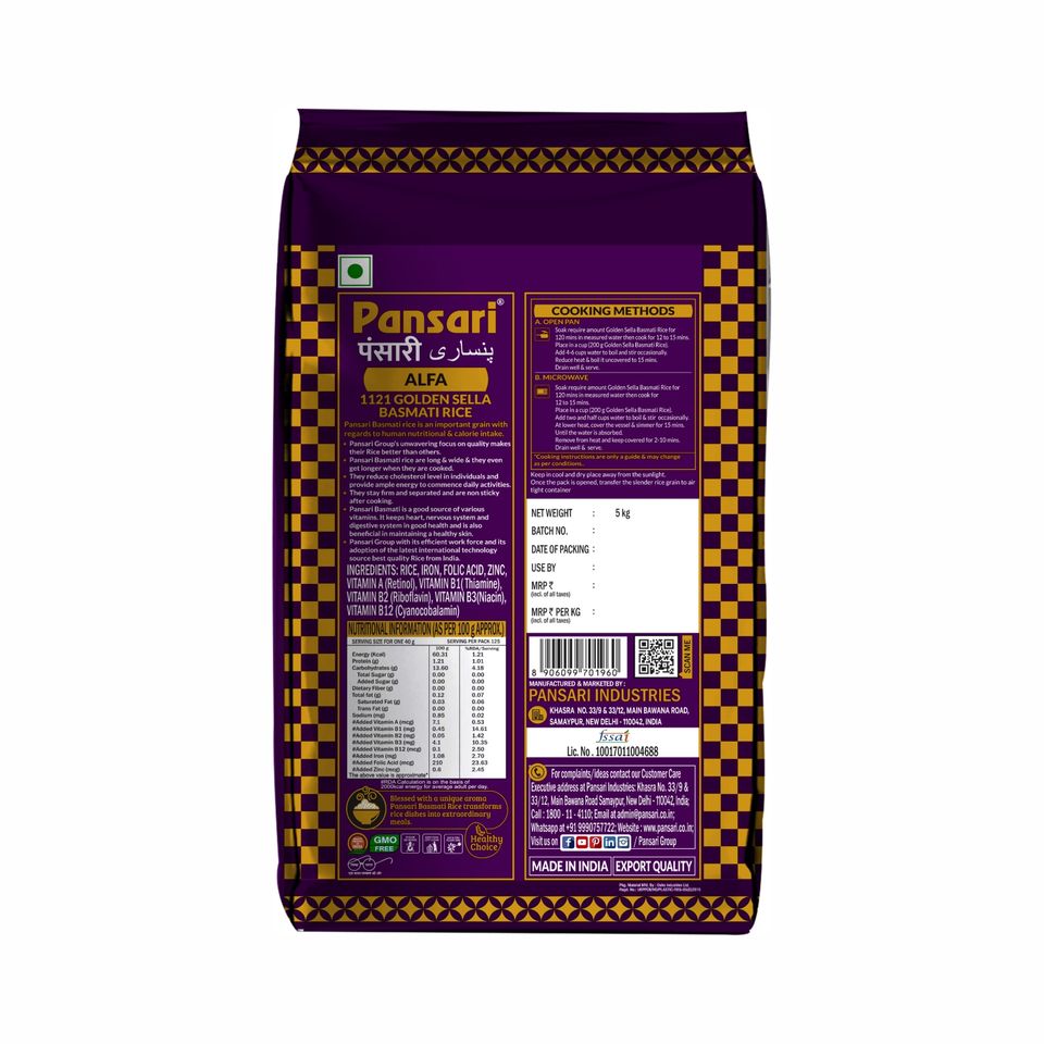 ข้าวบาสมาติ พานซารี อัลฟ่า 1121 ดรายซอฟท์โกลเด้นเซลล่า 5 กก.