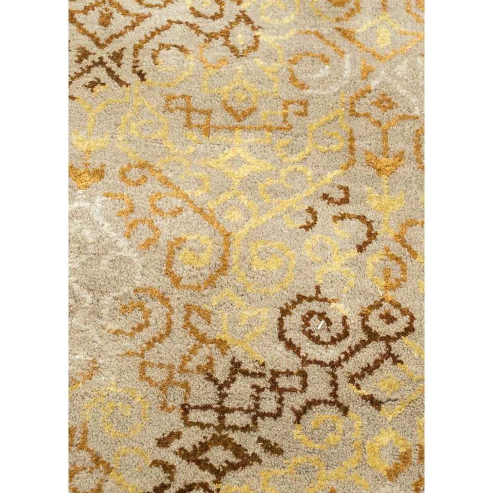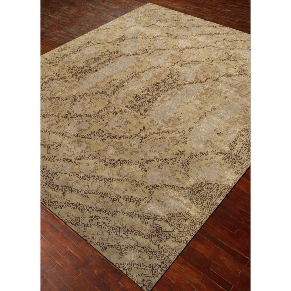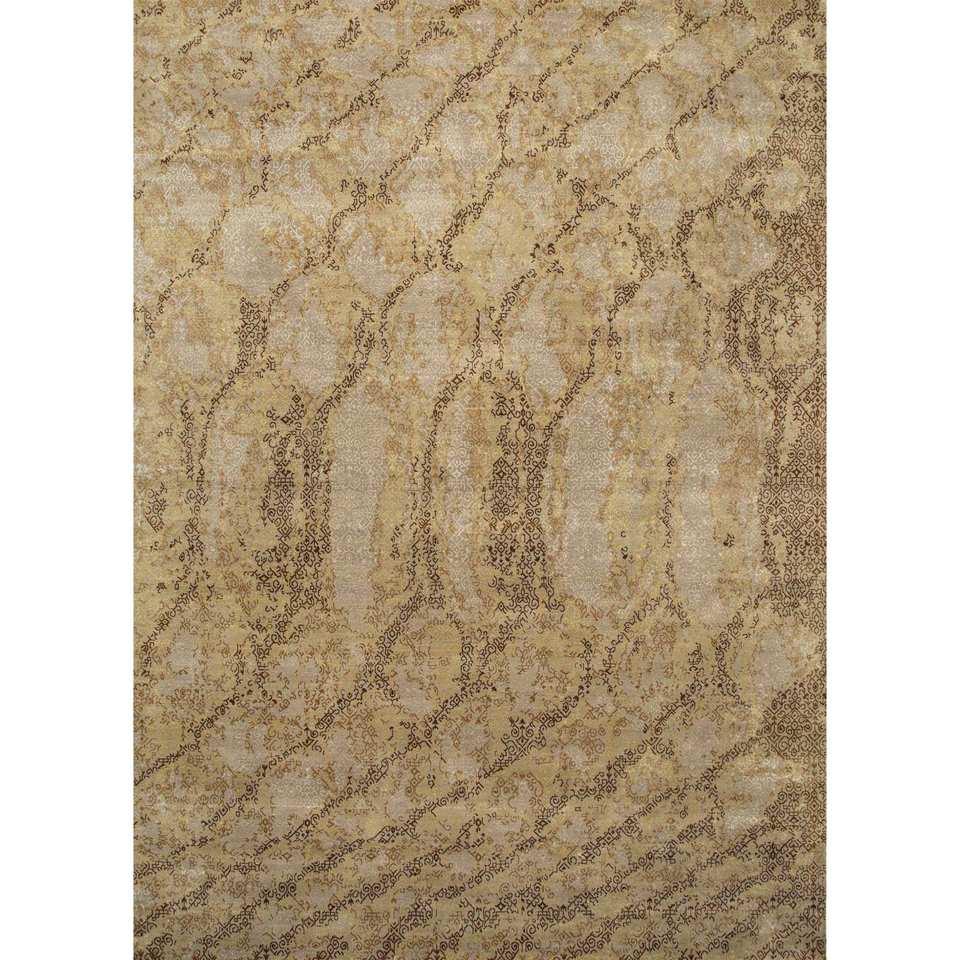 พรมขนสัตว์ผสมไหมถักมือสีเบจและสีน้ำตาลลายพันซี่ สำหรับใช้ในบ้าน รูปทรงสี่เหลี่ยมผืนผ้า สำหรับห้องนั่งเล่น ลายภาพนามธรรมแบบจิ๊กซอว์ รุ่น NRA-859