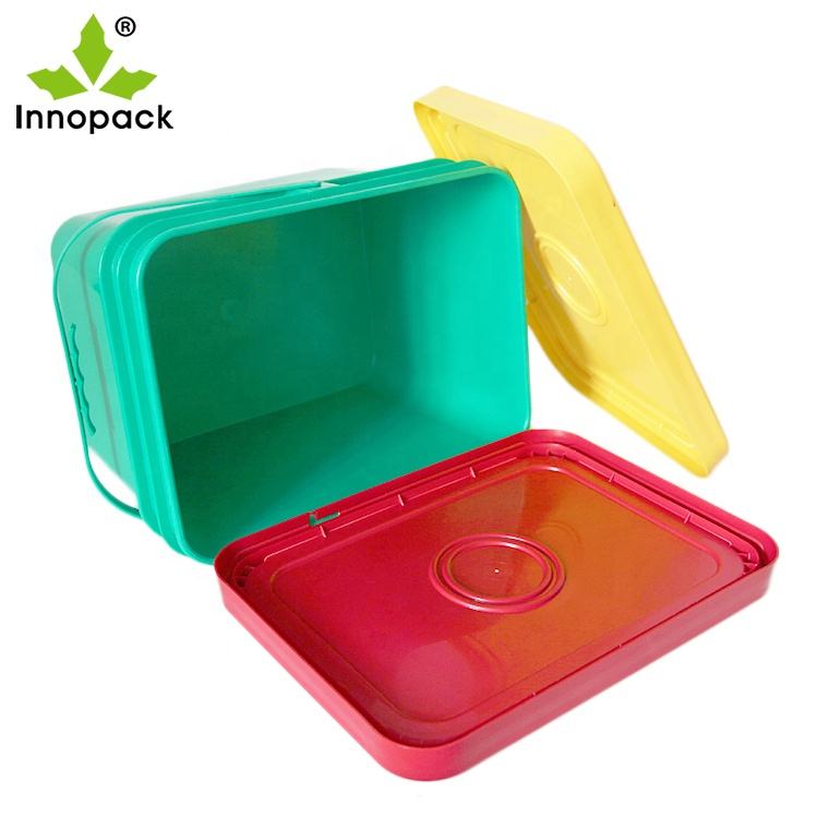 ถังพลาสติกทรงสี่เหลี่ยม PP 20 ลิตร สี Pantone เป็นมิตรกับสิ่งแวดล้อม เกรดสำหรับอาหาร พร้อมหูหิ้วพลาสติก และฝาปิดแบบฉีกออกได้