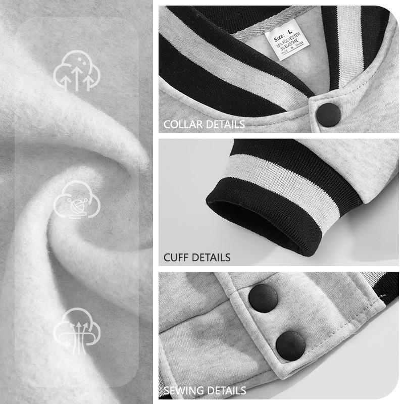 เสื้อแจ็คเก็ตเบสบอลผู้ชายปาปาสตาร์สีเบจสีดำตัดกันกันลมบุขนแกะเสื้อแจ๊กเก็ตลำลองไซส์ M