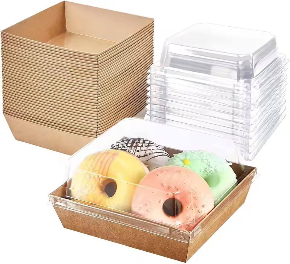 กล่องกระดาษใส่อาหารพร้อมฝาปิดใส กล่องแซนวิชแบบใช้แล้วทิ้ง กล่องอาหารทรงสี่เหลี่ยมสำหรับของหวาน สตรอว์เบอร์รี่