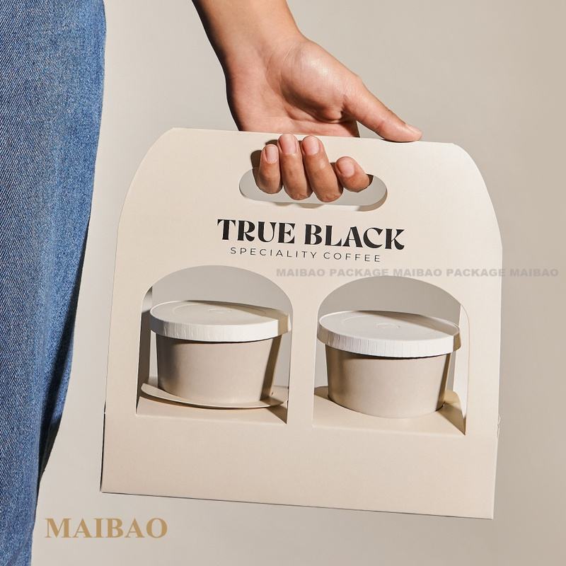 ที่วางแก้วกระดาษถาดใส่กระดาษแบบถือสำหรับใส่เครื่องดื่มร้อนสำหรับร้านกาแฟกำหนดโลโก้ได้เอง