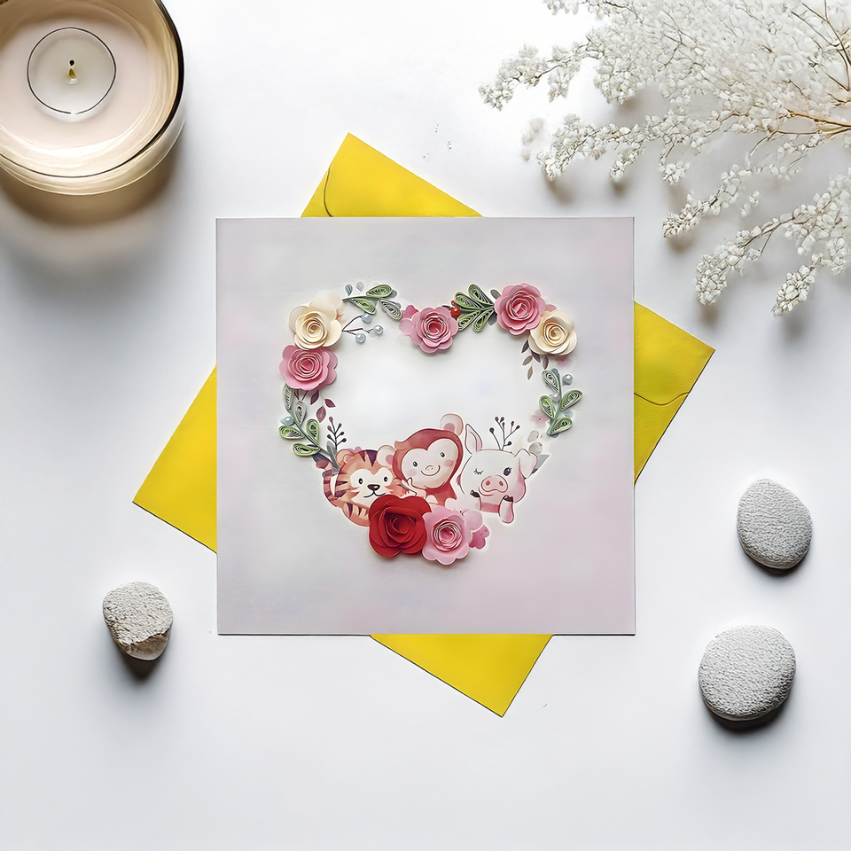 บัตรอวยพรกระดาษการ์ดแบบเวียดนามทำด้วยมือพร้อม3D ออกแบบรูปสัตว์ป็อปอัพ