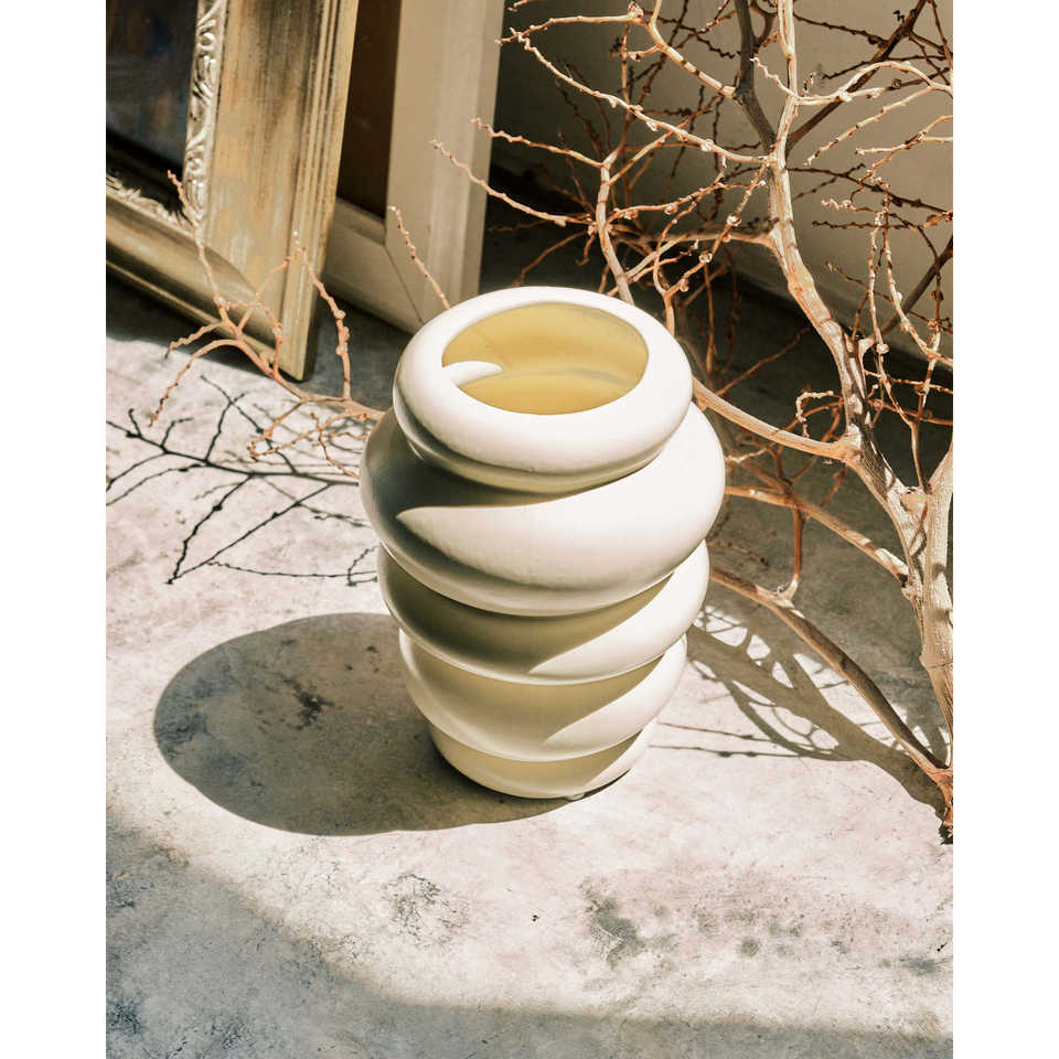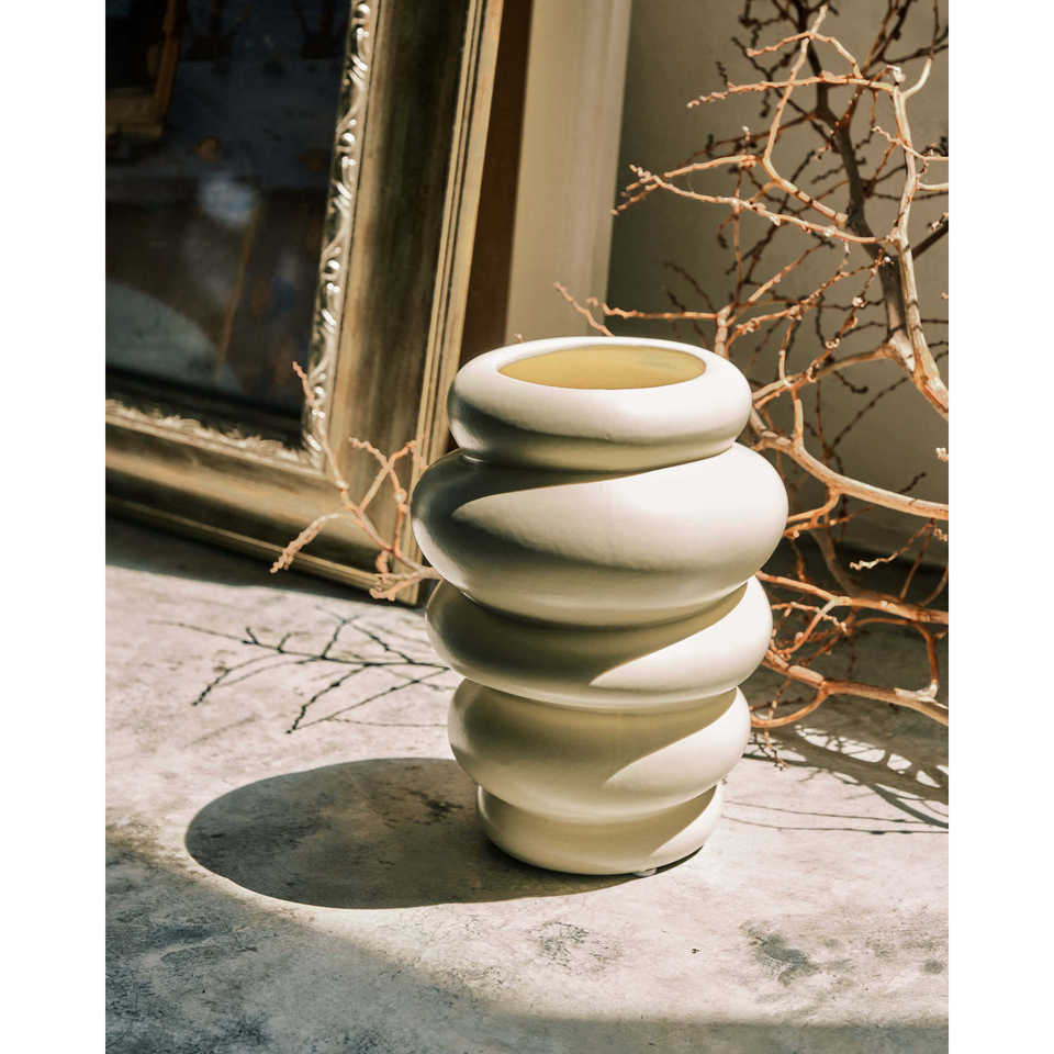แจกันเซรามิกสีครีมพาราโบลาดีไซน์พอร์ซเลนหรูหราสำหรับตกแต่งบ้าน