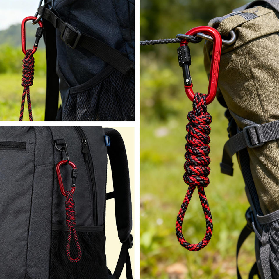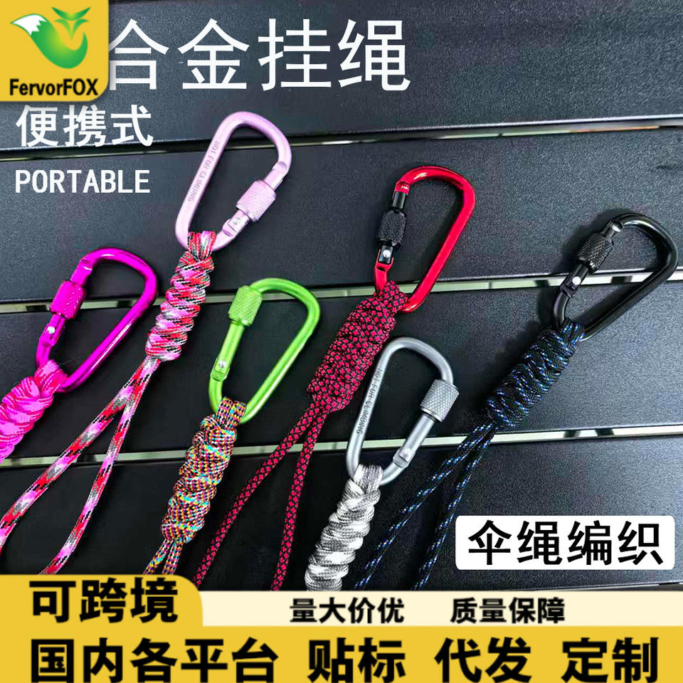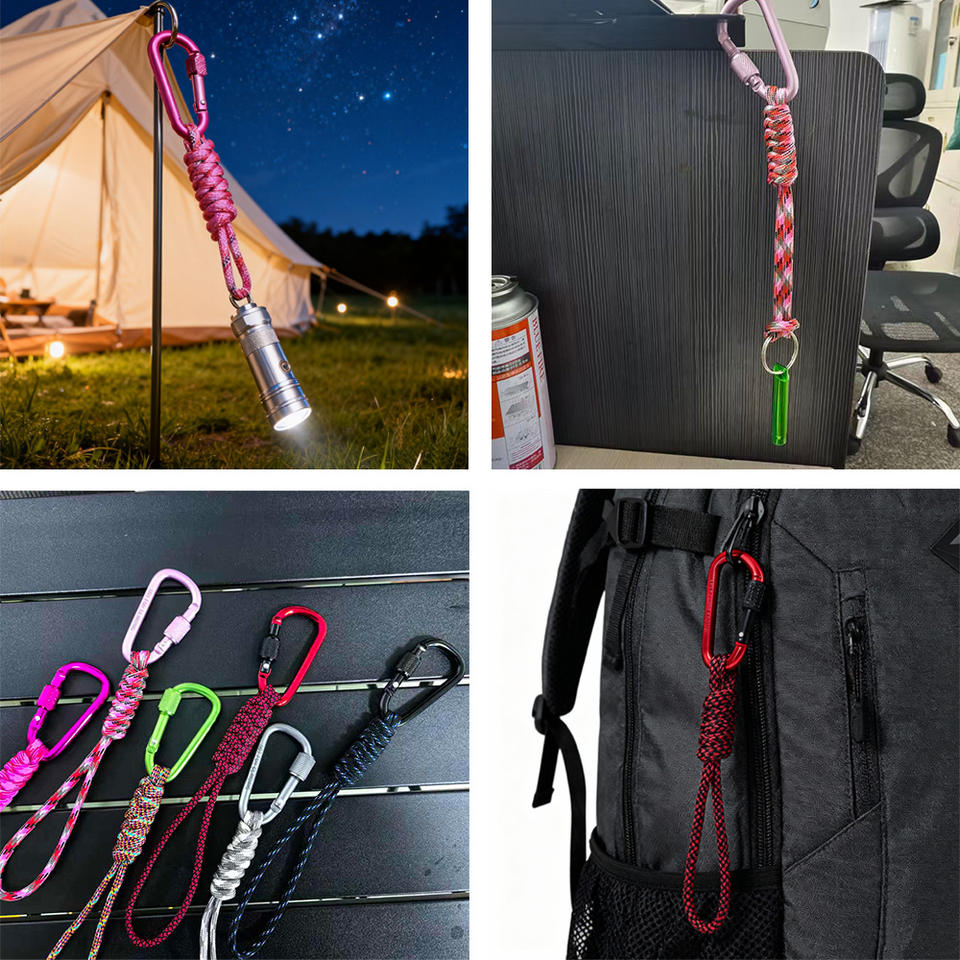 พาราคอร์ดพวงกุญแจแบบถัก อลูมิเนียมอัลลอยด์ ดีริง 6 มม. เชือกไนลอนแบบล็อคได้ สายคล้องคอแบบสปริง อุปกรณ์เอาตัวรอด ขนาดเดียว