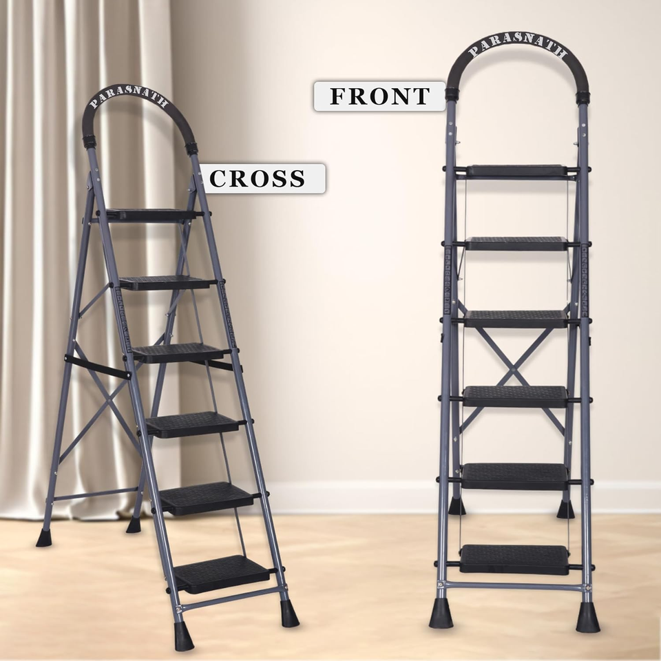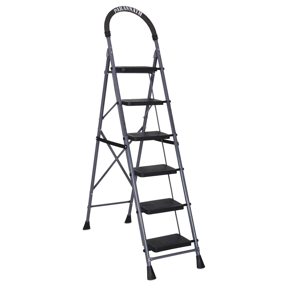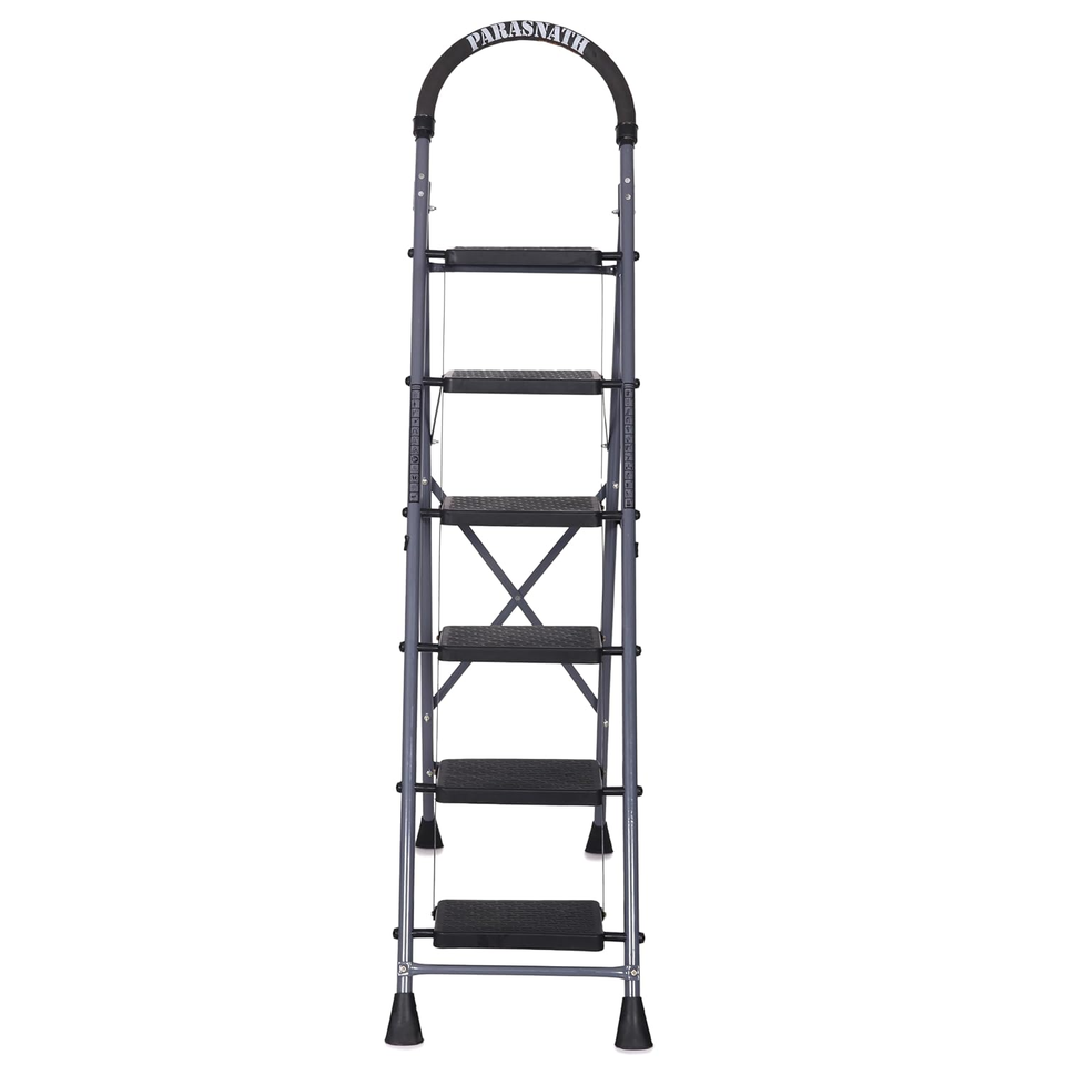 Parasnath บันไดเหล็กอุตสาหกรรม6ขั้นพับได้สีเทา-น้ำหนักเบาและป้องกันการลื่นไถล