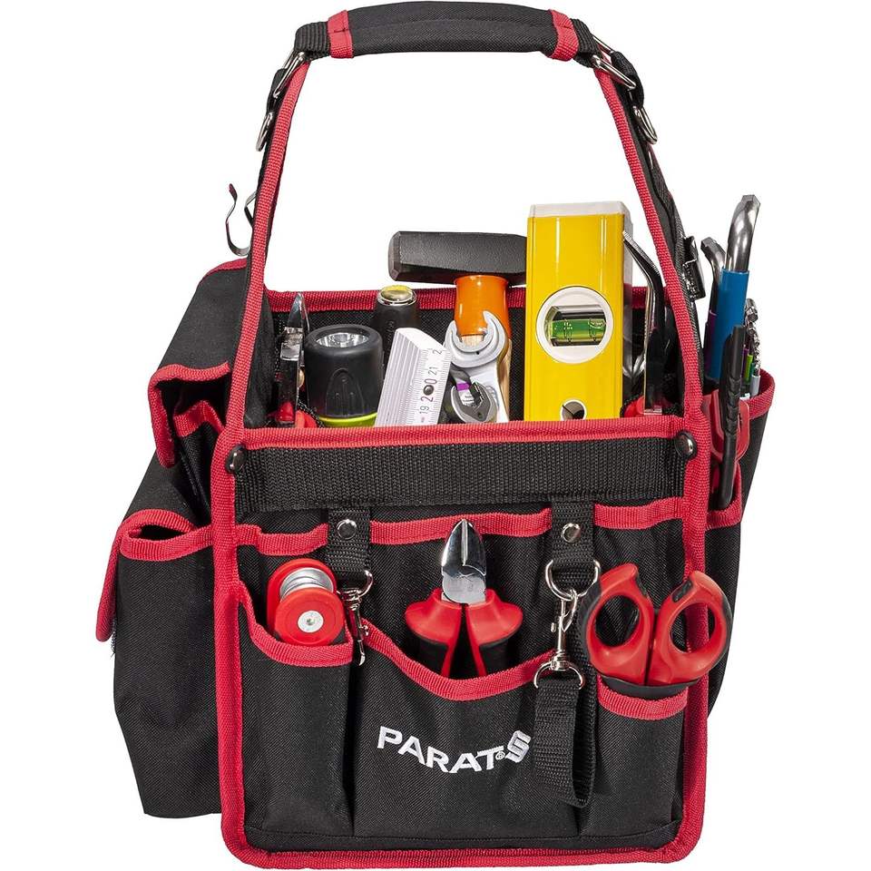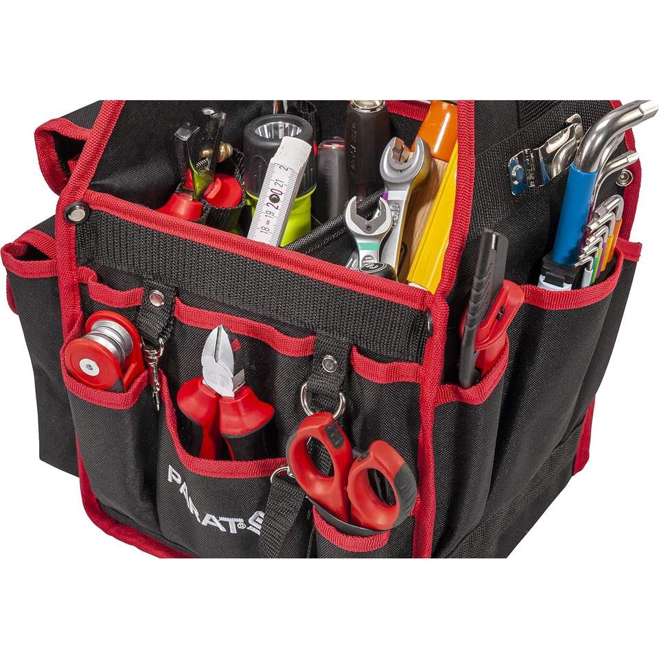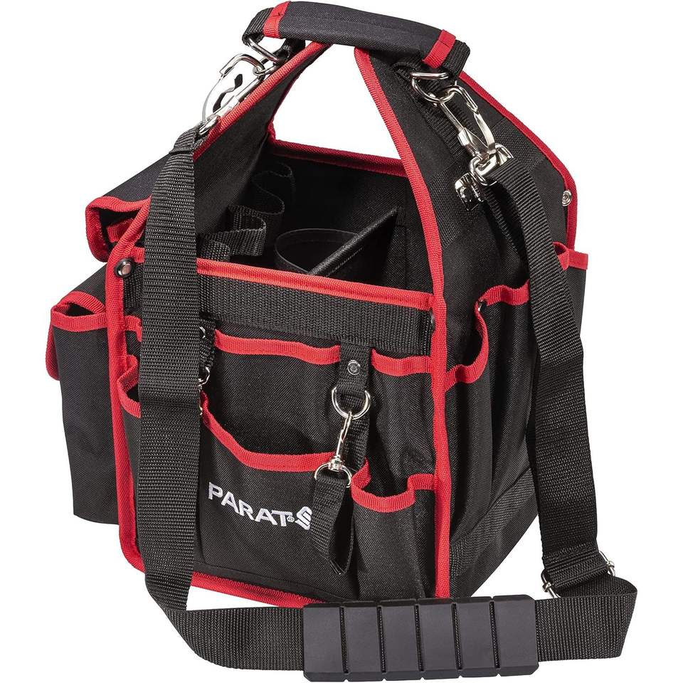 กระเป๋าเครื่องมือพารัท 21 ช่อง ทำจากไนลอน สายสะพายไหล่ปรับได้ สีแดง กระเป๋าแบบดัฟเฟิลหลายช่อง