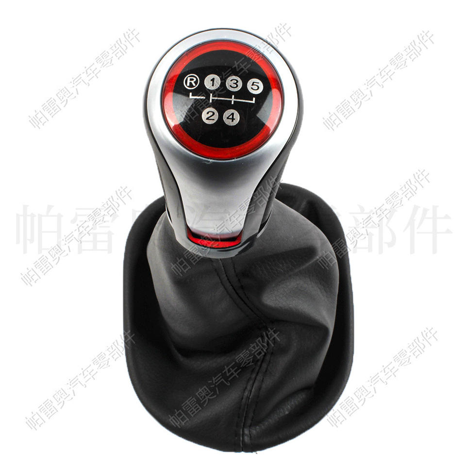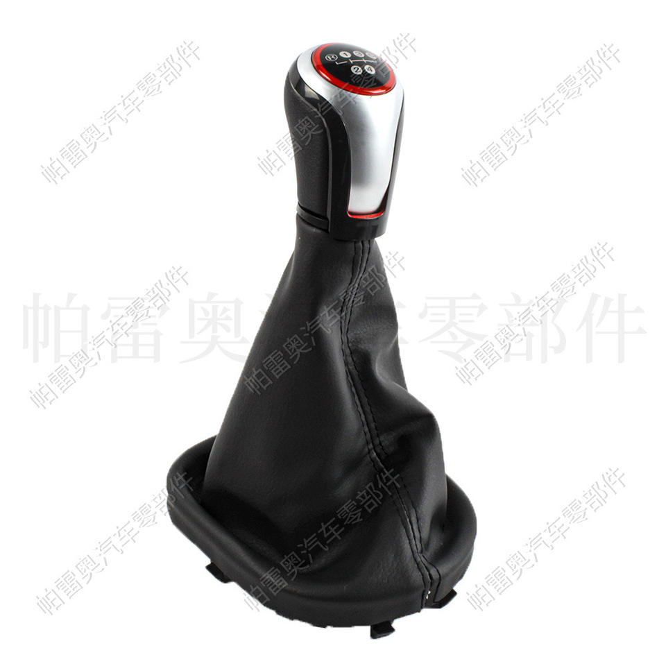 หัวเกียร์รถยนต์ Pareo หนังแท้ 5 สปีด สีดำ วงแหวนสีแดง ออกแบบตามหลักสรีรศาสตร์ สำหรับรถยนต์ Volkswagen Golf 6 และ Caddy