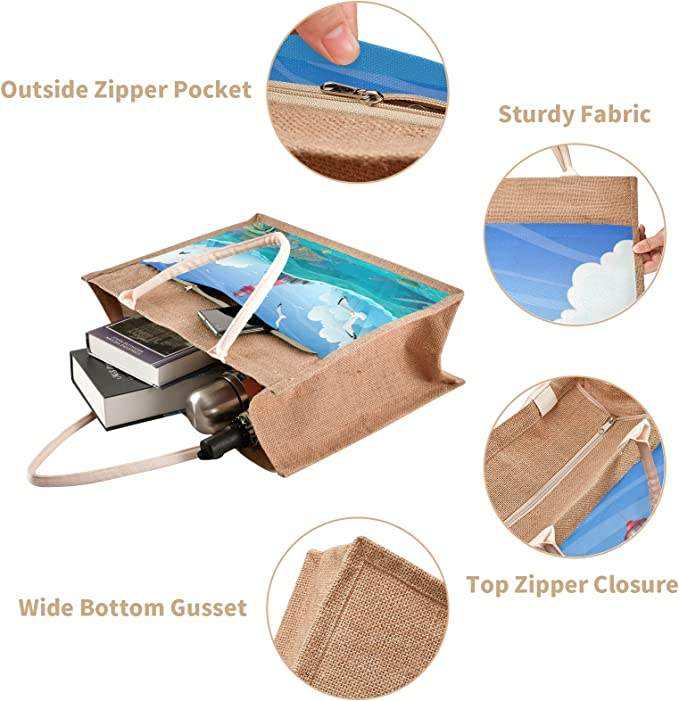 กระเป๋าผ้ากระสอบลายหอคอยปารีสพร้อมหูหิ้ว กระเป๋าผ้ากระสอบแบบใช้ซ้ำได้พร้อมซิปสำหรับเดทและทำงาน