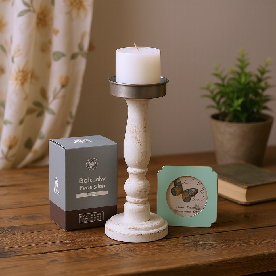 เชิงเทียนไม้แกะสลักสีขาวสไตล์ปารีสลอฟท์ ขนาด 3.5 นิ้ว สำหรับตกแต่งบ้านสไตล์ชิคแบบวินเทจ