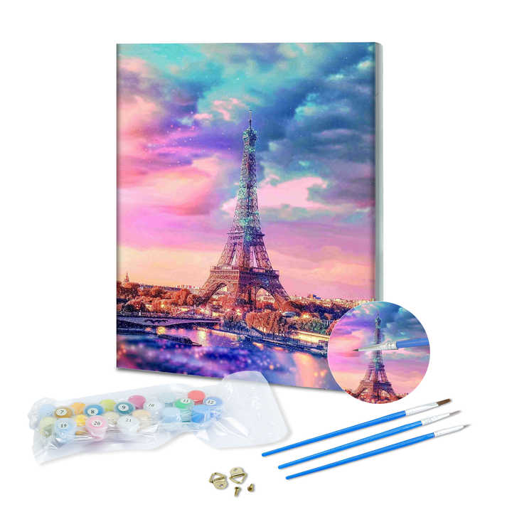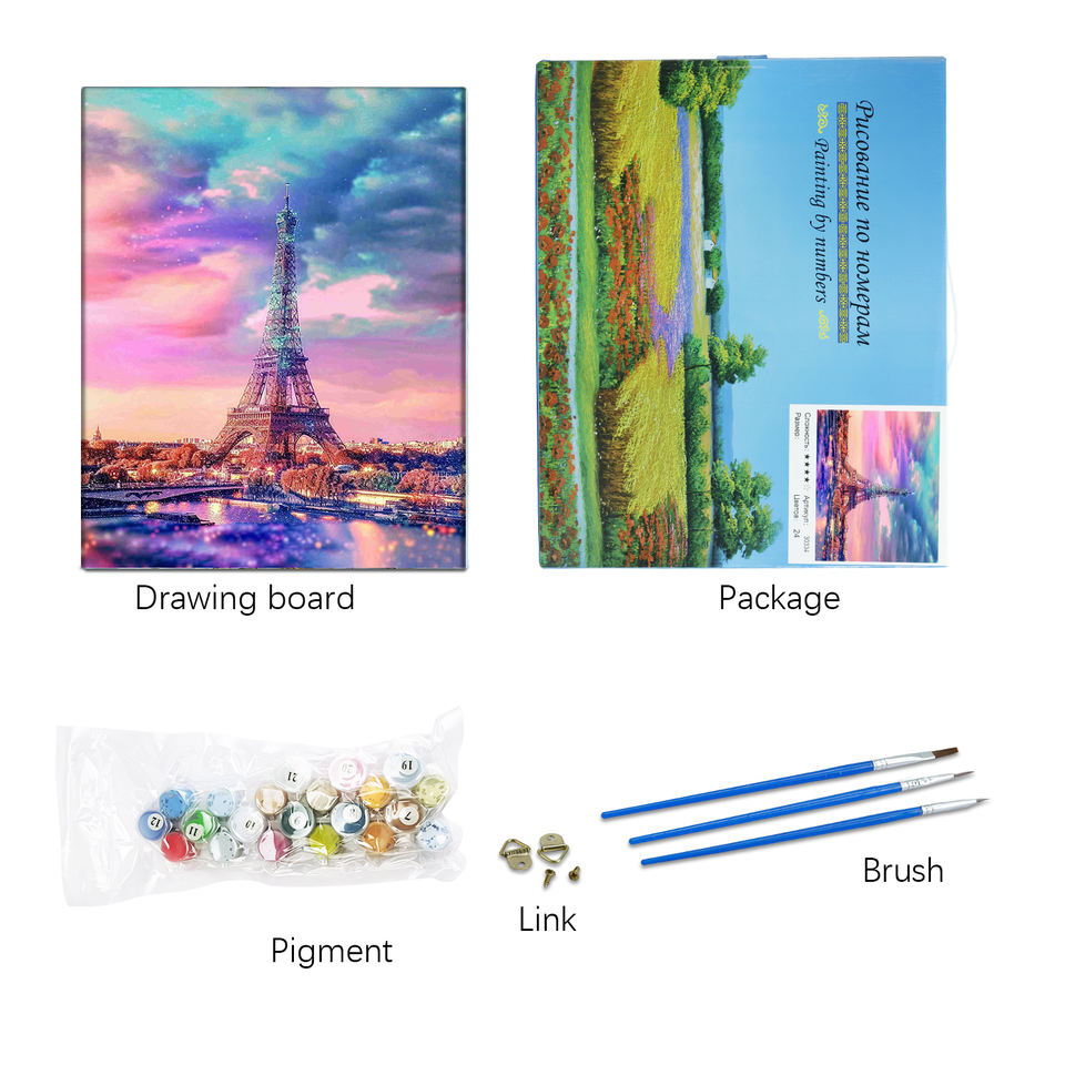 ภาพวาดหอคอยปารีสด้วยตัวเลขบนผืนผ้าใบพร้อมกรอบชุดทำมือสำหรับผู้ใหญ่ที่วาดภาพอะคริลิคสีน้ำมัน